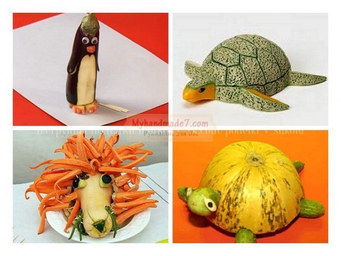 Поделки из овощей лучше делать так, чтобы овощи потом можно было приготовить и съесть.