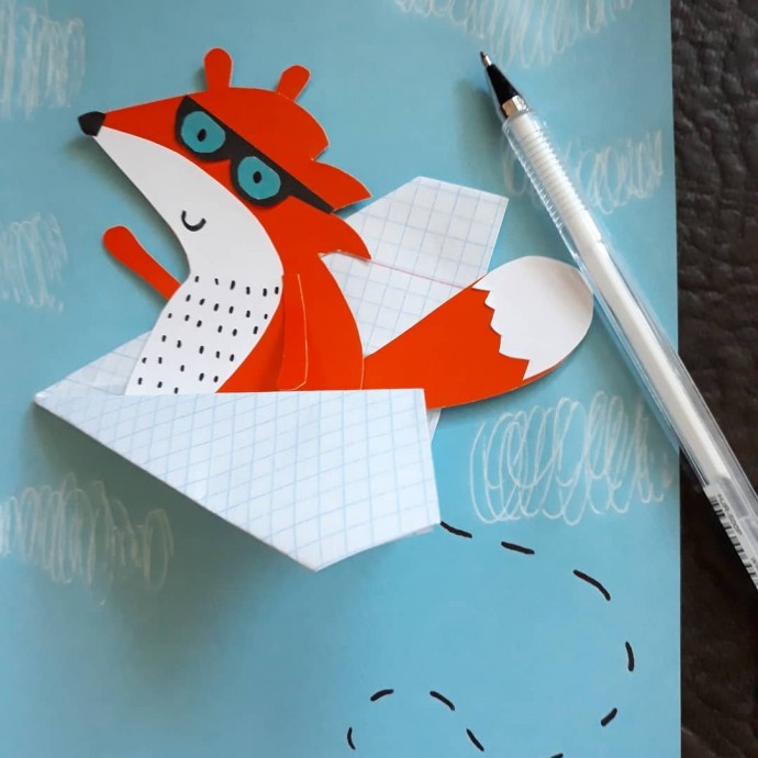 Объемная аппликация из цветной бумаги для детей "Лиса-пилот"