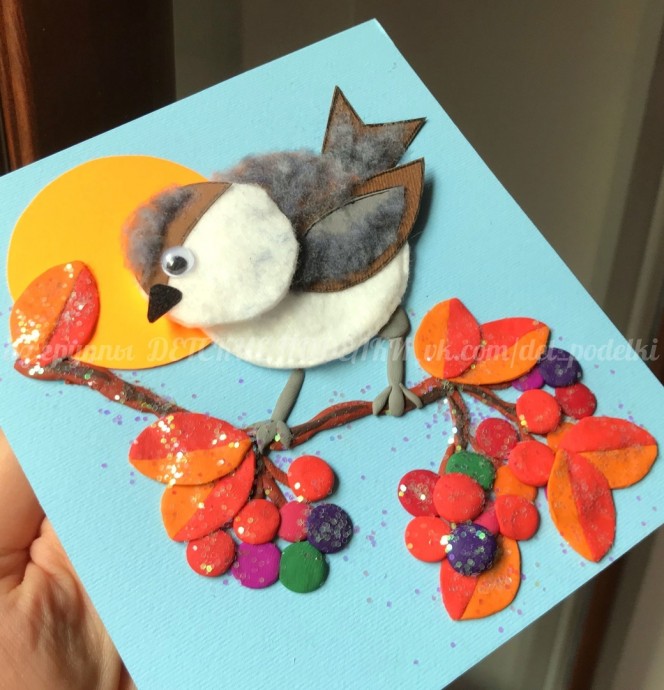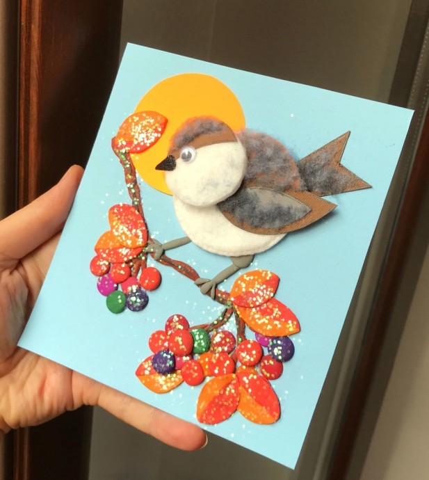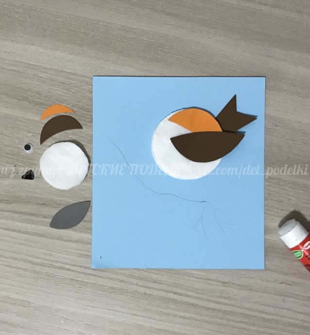 Аппликация из бумаги и ватных дисков "Воробушек"