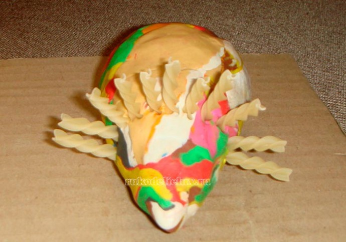Ёжик из макарон и пластилина может быть сделан из старых макарон с истекшим сроком использования.