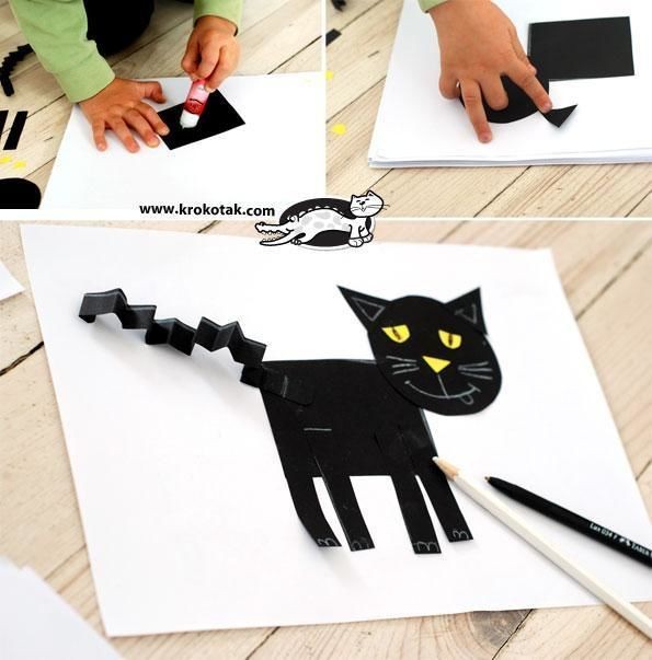 Черный кот с хвостом-гармошкой доступен для изготовления с детьми любого возраста.