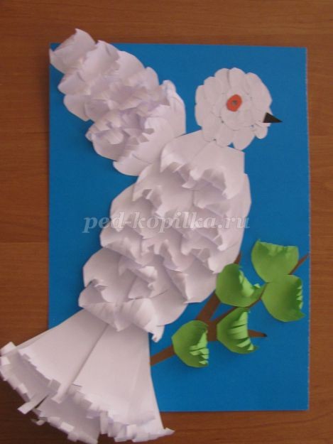 Объёмная аппликации по теме "Весна": часть 2 Объёмная аппликации по теме "Весна": часть 2 Авторы: Тлеугаз Диас, Бестик Ирина Викторовна. 7. Теперь будем делать крыло нашей птицы. Берем маленькие бумажные перышки и начинаем приклеивать с конца крыла до туловища, тоже накладывая деталь на деталь по контуру крыла. 8. Берем овалы и приклеиваем по контуру головы от края к середине, также накладывая детали. 9. Берем черный картон и вырезаем произвольно нос для птицы, затем приклеиваем. Из оранжевого картона вырезаем маленький глаз и приклеив... Объёмная аппликация по теме "Весна": часть 1 Объёмная аппликация по теме "Весна": часть 1 Авторы: Тлеугаз Диас, Бестик Ирина Викторовна. 1. Для выполнения объемной аппликации нам необходимо подготовить с помощью шаблонов детали для нашей работы. Сначала берем белую офисную бумагу и вырезаем детали для изготовления птицы: хвост – 6 деталей, большое перо – 16 деталей, маленькое перо – 16 деталей, овал для головы – 16 деталей. Складываем белую бумагу в 6 слоев, берем шаблон хвоста нашей птицы и обводим простым карандашом, затем вырезаем де... Отражение весны: часть 3 Отражение весны: часть 3 Автор: Зуева Татьяна Владимировна. Когда краска подсохнет, рисуем крышу. Рисуем забор. Прорисовываем детали на берегу. Складывать лист вдвое дольше не надо. Дорисовываем трубу, ставни, украшаем крышу. Вот такая красота у нас получилась. Часть 1 https://www.detkipodelki.ru/pages/22898.html Часть 2 https://www.detkipodelki.ru/pages/22906.html Часть 3 https://www.detkipodelki.ru/pages/22914.html Отражение весны: часть 1 Отражение весны: часть 1 Автор: Зуева Татьяна Владимировна. Теперь на нашем рисунке по реке, отражаясь, поплыли облака.Начинаем прорисовывать детали. Если их много, рисуйте по частям. Быстро, но аккуратно, рисуем деревья. Продолжаем после каждого рисования сгибать лист, проглаживать ладонью и любоваться отражением. Продолжаем таким же рисовать все деревья. Набираем на кисточку гуашь и техникой тычкования рисуем листву. Вот уже и листва отражается в реке. Рисуем домик. Чтобы краска не слилась, с... Отражение весны: часть 1 Отражение весны: часть 1 Автор: Зуева Татьяна Владимировна. Необходимые материалы: бумага, кисти, гуашь, акварель. Техника выполнения работы: Лист бумаги складываем вдвое. На одной его половине рисуется пейзаж, на другой получается его отражение в реке (отпечаток). Рисуется очень быстро, чтобы краска не успела высохнуть. Поэтому, если много деталей, каждые прорисовываются отдельно. Каждый раз делая отпечаток. Пейзаж получается размытым. Основной рисунок, после того как с него сделан оттиск... Ранняя весна в технике "Граттаж" Ранняя весна в технике " Граттаж" Автор работы: Шишова Лилия Александровна Закрашиваем половину листа коричневой гуашью – это будет земля или земляные проталины. Вторую половину листа раскрашиваем голубым цветом. Необходимо, чтобы лист высох. Затем натираем лист восковой свечой толстым слоем. Мне нравится наносить на бумагу растопленный воск Вот такая неприглядная картина получилась Добавляем в белую и голубую гуашь моющее средство и покрываем ей весь лист. Белой гуашью – коричневую часть ... Весенняя аппликация: часть 2 Весенняя аппликация: часть 2 Автор: Шишова Лилия Александровна Цветы нарциссов готовы. Теперь готовим цветы мимозы. Нарезаем салфетки на небольшие кусочки, катаем из них плотные комочки. Вырезаем листья для цветов. Для нарцисс