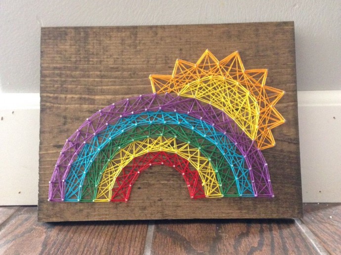 Стринг-арт: идеи для детского творчества Стринг-арт: идеи для детского творчества Стринг Арт (String Art), или изонить – это вид графики, суть которого в том, что рисунок создается путем особого переплетения нитей. Его изобрели английские ткачи еще в 16 веке. Они забивали в дощечки гвоздики и в определенном порядке натягивали на них цветные или однотонные нити. В результате получался изящный воздушный рисунок. Такой картиной часто украшали жилища. По одной из версий, плетеные изображения использовались как заготовки или образцы узоров для тк... Панно с совушкой из ниток и гвоздей Панно с совушкой из ниток и гвоздей Слух идет по белу свету, Что мудрее всех сова. Но, скажу вам по секрету, Нет несносней существа. Я учтивости при встрече Для нее не берегу. Говорю ей: «Добрый вечер!» А сова в ответ: «Угу!» Я сердечно замечаю: «Вам не холодно в снегу? Залетайте выпить чаю…» А сова в ответ: «Угу!» «Снова вам, сова, не спится?» А в ответ опять: «Угу!» Нет, культурно с этой птицей Я общаться не могу. Автор: Алексей Ерошин Яркое панно из ниток Яркое панно из ниток Яркое панно из ниток выполнено в технике стринг-арт. Кактусы из оплетенных пряжей гвоздей Кактусы из оплетенных пряжей гвоздей Кактусы из оплетенных пряжей гвоздей это техника стринг-арт, которая доступна детям любого возраста, если папы позаботятся и сделают основу своими руками. Детская картина в технике изонить Детская картина в технике изонить Детская картина в технике изонить может быть сделана детьми среднего и старшего возраста самостоятельно. Малыши будут творить совместно со взрослыми. Идеи зимнего стринг-арта с детьми Идеи зимнего стринг-арта с детьми Папа забивает гвозди, а ребенок натягивает нити, создавая картины. Совместное творчество с папой: ёлка в стиле стринг-арта Совместное творчество с папой: ёлка в стиле стринг-арта Папа забивает гвозди. Ребенок натягивает нити. Мама смотрит и умиляется. Чудесная новогодняя картинка получается. Клеевой пистолет можно заменить обычным клеем. Ёлочка в технике стринг-арт детскими руками Ёлочка в технике стринг-арт детскими руками String Art – это достаточно популярное творчество, которое позволяет сочетать несочетаемые, на первый взгляд, вещи: лёгкость нитей и жёсткость гвоздей. Гвозди стоит поручить забивать папе, равно как и покрыть доску лаком. Это отличное совместное творчество отца и ребенка. Впрочем, можно делать и на доске без покрытия. Такая поделка способствует развитию ловкости рук и координации движений ребенка. Как, впрочем, и папы. Панно с листьями из ниток и гвоздей Панно с листьями из ниток и гвоздей Панно из пряжи — это подложка, изготовленная из плотного материала, на которой вбиваются в определённом расположении гвозди, и при помощи нитей создаётся рисунок. Одним словом, булавки, выполняют роль колышков, за которые крепятся нитки. Такая работа требует много внимания. А еще такая работа ребенка невозможна без вовлечения в творческий процесс любимого папы: ведь кто еще лучшим способом забьет гвозди для детской поделки. Творите всей семьей и будьте... Стринг-арт: листья Стринг-арт: листья Стринг-арт в виде листьев это совместное творчество папы и ребенка. Мало что сближает так же сильно. Приятного вам совместного творчества. Осеннее панно из ниток и гвоздей Осеннее панно из ниток и гвоздей - это возможность сблизиться с папой, за