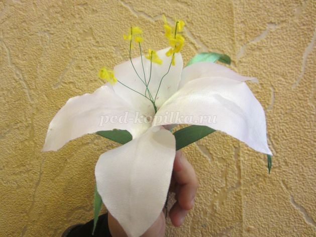 Тряпичная куколка-оберег в вышитом фартуке Тряпичная куколка-оберег в вышитом фартуке Фартук можно вышить. Или нарисовать узор. Или найти ткань с похожим принтом. Нежный ангел из солёного теста детскими руками: мастер-класс, часть 3 Нежный ангел из солёного теста детскими руками: мастер-класс, часть 3 Автор: Гневанова Ольга Михайловна. Заготовка готова. Я сушу изделия естественным путем. Сушка занимает 5-7 дней, в зависимости от толщины изделия. Затем зачищаем ее наждачной бумагой, чтобы сделать ее гладкой. Начинаем раскрашивать нашего ангелочка. Золотой краской раскрасим крылышки. Платьице синей перламутровой краской при помощи томпона. Края –более интенсивнее, чтобы придать объем изделию... Нежный ангел из солёного теста детскими руками: мастер-класс, часть 2 Нежный ангел из солёного теста детскими руками: мастер-класс, часть 2 Автор: Гневанова Ольга Михайловна. Из отдельных кусочков теста формируем ручки. Из шарика формируем голову. Подкладываем под голову трубочку. Из чесночницы выдавливаем тесто и формируем волосы. Приклеиваем носик. Делаем корзинку. Скручиваем в жгут две колбаски, затем формируем саму корзинку. Часть 1 https://www.detkipodelki.ru/pages/24856.html Часть 2 https://www.detkipodelki.ru/pages/24864... Нежный ангел из солёного теста детскими руками: мастер-класс, часть 1 Нежный ангел из солёного теста детскими руками: мастер-класс, часть 1 Автор: Гневанова Ольга Михайловна. Материалы, необходимые для работы: Классический рецепт: Мука – 300 г (2 чашки) Соль – 300 г (1 чашка) Вода – 200 г (200мл). Для работы понадобится: Соленое тесто, деревянная каталка, разделочная доска(картон), нож, чесночница, бокал и акриловые краски или «гуашь», акварельные кисточки. Пошаговый процесс выполнения работы: Приготовим соленое тесто. Предлагаю Вам кл... Цветок из атласных лент: мастер-класс, часть 2 Цветок из атласных лент: мастер-класс, часть 2 Авторы: Лбова Анастасия, Тюкова Екатерина Александровна. 7. Собираем лепестки чередуя детали по цвету(скрепляем с помощью клея). 8. У нас получилось 6 лепестков. 9. Вырезаем из белого картона круг для основания цветка. И приклеиваем лепестки. 10. Получившийся цветок декорируем бусинами при помощи горячего клея. 11. Цветок готов Часть 1 https://www.detkipodelki.ru/pages/24628.html Часть 2 https://www.detkipodelki.ru/pages/24636.html Декорирование пасхальных яиц Декорирование пасхальных яиц Автор: Корнеева Светлана Геннадьевна Сначала задекорируем яйцо. Возьмите его, а также нитки подходящего цвета и деревянную палочку. Обмакнув в клей острый конец деревянной палочки, вставьте его вместе с концом нитки в верхнюю часть яйца. Смазывая яйцо клеем, аккуратно накручивайте нитку по спирали. В конце аккуратно подклейте нитку. Приступим к декору яйца. Изготовим цветочки в технике квиллинг. Можно купить готовый набор для квиллинга, а можно самим нарезать пол... Цветок из атласных лент: мастер-класс, часть 1 Цветок из атласных лент: мастер-класс, часть 1 Авторы: Лбова Анастасия, Тюкова Екатерина Александровна. Для изготовления цветка необходимо: Шелковая лента розового и темно-розового цветов шириной 5 см по 1 метру, выжигатель по ткани, ножницы, горячий клей. Процесс: 1. Из розовой ленты вырезаем выжигателем 3 квадрата со стороной 5 см, 3 квадрата со стороной 4,5 см, 3 квадрата со стороной 4 см, 3 квадрата со стороной 3,5 см, 3 квадрата со стороной 3 см. Такие же квадраты вырезаем из темно-р... Цветок из ткани лилия: ма