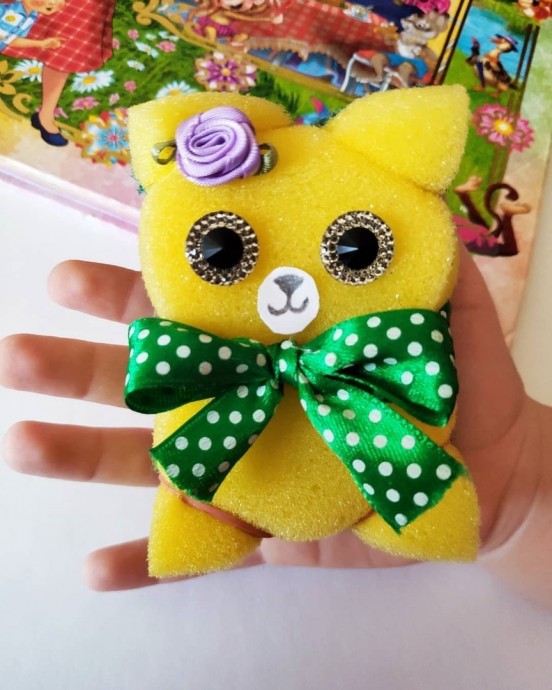 Потешный котенок Потешный котенок Потешный котенок с лёгкость создаётся из губки для мытья посуды. Кораблики из губок Кораблики из губок По реке они, конечно, не поплывут. Но в играх их использовать очень интересно. Танк из губки Танк из губки Вместо клеевого пистолета вы можете использовать просто клей. Тот, который вам больше нравится и более безопасен для маленьких детей. Приятного вам совместного творчества. Декор в виде арбузных скибок Декор в виде арбузных скибок Декор в виде арбузных скибок наносится с помощью губки, специально обрезанной для этого. 2 Котёнок из губки Котёнок из губки это поделка, проще которой придумать сложно.