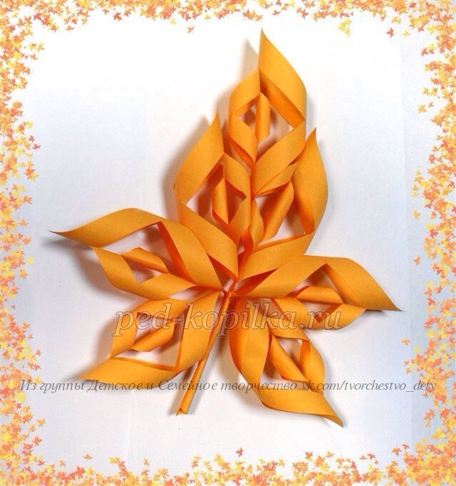 Кленовый листок из бумаги: часть 2 Кленовый листок из бумаги: часть 2 Автор: Терентьева Наталья Сергеевна 6. Склеиваем края двух элементов, зажимая между ними жгутик. 7. Между двумя элементами вставляем третий и склеиваем их. 8. Склеиваем оставшиеся элементы попарно. 9. Приклеиваем пары элементов к жгутику. Кленовый листок из бумаги готов Часть 1 https://www.detkipodelki.ru/pages/23248.html Часть 2 https://www.detkipodelki.ru/pages/23256.html Кленовый листок из бумаги: часть 1 Кленовый листок из бумаги: часть 1 Автор: Терентьева Наталья Сергеевна 1. Нарезаем из цветной бумаги 7 одинаковых квадратов и 1 прямоугольник. Чем больше квадраты, тем больше будет лист. Складываем квадраты по диагонали. 3. Намечаем карандашом места надрезов, разрезаем, распрямляем. 4. Начинаем склеивать стороны, чередуя их. 5. Скручиваем из прямоугольника жгутик. Часть 1 https://www.detkipodelki.ru/pages/23248.html Часть 2 https://www.detkipodelki.ru/pages/23256.html Прекрасный клён Прекрасный клён Автор: Андреева Ирина Емельяновна. Материалы: цветной картон, шаблон дерева, ножницы, клей – карандаш, фломастеры, пайетки листьев. Процесс: Раскрасить ствол дерева в коричневый цвет Вырезать дерево по контуру Приклеить дерево на желтый картон Приклеить пайетки листьев на дерево Для рамочки приготовить пайетки листьев другого цвета и формы Сделать рамку из листьев Вот какой осенний клён получился Пышный осенний клён Пышный осенний клён Такая композиция не хуже новогодней ёлки, но будет уместна в любое время года. Дайте ребенку возможность быть полезным. Рисуем пластилином кленовый листочек Рисуем пластилином кленовый листочек Клён под солнышком купался И ладошкой умывался. Осень красная пришла Все ладошки обожгла. Дождик пламя потушил, Ветер ветки подсушил. Желтые ладошки К нам летят в окошки. Кулагина А. Красивый кленовый лист Красивый кленовый лист Клен встречает самым первым Осени приход. Кружит в воздухе веселый Листьев хоровод, Землю быстро укрывает Золотым ковром — Пусть родная засыпает Долгим зимним сном. Объёмный кленовый лист Объёмный кленовый лист Объёмный кленовый лист делается из желтой, оранжевой и красной бумаги. Рисунок с дополнением из природного материала Рисунок с дополнением из природного материала Ёжик нарисован и дополнительно наклеены "самолётики" клёна. Кленовый лист из бумаги Кленовый лист из бумаги Кленовый лист из бумаги выполняется в технике оригами. Кленовый листочек Кленовый листочек Кленовый листочек изготавливается из бисера и помогает развить точность координации движений ребенка. Кленовые листики из пластиковых папок Кленовые листики из пластиковых папок Автор: Мухина Ирина Владимировна. Разноцветный кленовый листик из цветной бумаги Разноцветный кленовый листик из цветной бумаги Интересная поделка осеннего листика с использованием техники оригами. Материалы: цветной картон двусторонняя цветная бумага клей ПВА карандаш шаблон ножницы Процесс: 1. Рисуем и вырезаем шаблон половинки листика. 2. Цветной лист бумаги складываем пополам. Прикладываем к нему шаблон и обводим по контуру. 3. Вырезаем заготовку. Открываем её, как книжку. 4. Начиная с нижнего края, складываем заготовку «гармошкой», ... Синичка на листьях клёна Синичка на листьях клёна Осенние поделки — комбинированная аппликация из картона, пластилина и ватных дисков. Кленовый лист из бумаги Кленовый лист из бумаги Детское творчество можно отдел