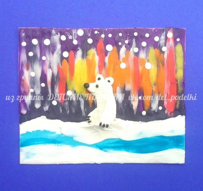 Пластилиновая поделка "Мышонок-завитушка" Пластилиновая поделка "Мышонок-завитушка" Купила мышка сырный дом За пять монет с большим трудом. А в доме этом сырный пол. Стоит в гостиной сырный стол. Там длинный сырный коридор. На окнах много сырных штор. Кругом полным-полно ковров Из твёрдых плавленых сыров. Родня явилась к ней чуть свет… Теперь у мышки дома нет Простая пластилиновая зимняя поделка "Умка и северное сияние" Простая пластилиновая зимняя поделка "Умка и северное сияние" Рисование пластилином развивает не только фантазию, но и мелкую моторику детских рук.