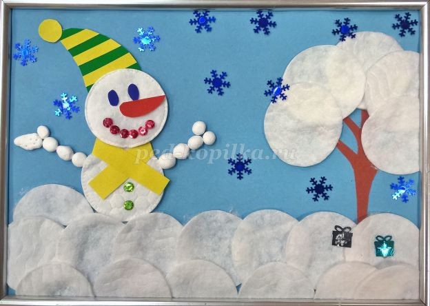 Объёмная новогодняя ёлочка детскими руками Объёмная новогодняя ёлочка детскими руками Автор работы: Кропотина Александра Юрьевна Вам потребуется: Белый лист формата А3,гофрированная бумага зеленого цвета, атласные ленты (голубая, оранжевая, красная),стразы, пара зубочисток, ножницы, клей. Процесс: На белом листе бумаги чертим и вырезаем круг (размер зависит от того, какой высотой вы хотите свою елочку) Из полученного круга делаем конус Обклеиваем его зеленой гофрированной бумагой Из гофрированной бумаги нарезаем полоски длинной... Новогодняя аппликация "Снеговик": часть 2 Новогодняя аппликация "Снеговик": часть 2 Автор: Солодилова Елена Петровна 5. Приступаем к снеговику: наклеиваем ватные диски друг на друга. 6. Теперь мы начинаем формировать лицо снеговика: вырезаем из той же цветной бархатной бумаги оранжевый носик и приклеиваем. 7. Ротик мы делаем из красных пайеток. 8. Дальше мы делаем колпачок и шарфик, (колпачок можно сделать любой формы и соответственно цвета).Шарфик мы делаем так: вырезаем прямоугольную полоску из цветной бумаги, межд... Новогодняя аппликация из стружки от карандашей Новогодняя аппликация из стружки от карандашей Авторы: Грязева Дарья, Канюкова Анна Николаевна. 1. Берем карандаш зеленого цвета, точим его в чинилке, чтобы получилось большое количество стружки. 2. Приклеиваем с помощью клея-карандаша стружку, выкладывая ее в виде елочки. 3. Далее точим карандаш голубого цвета и выкладываем сугроб. 4. Из красной бумаги вырезаем звездочку и приклеиваем её на макушку нашей ёлочки. 5. Из стружки желтого цвета делаем на небе месяц, а из маленьких кусочков - зве... Новогодняя аппликация "Снеговик": часть 1 Новогодняя аппликация "Снеговик": часть 1 Автор: Солодилова Елена Петровна 1. Берем трафарет дерева и обводим на бархатной бумаге, вырезаем. 2. Приклеиваем на голубую бархатную бумагу. 3. Берем ватный диск, разъединяем его по толщине на 2 части и приклеиваем на сучки дерева внутренней стороной диска наружу. Клей наносим капельками на середину ватного диска и придерживаем рукой несколько секунд. 4. Закончив с деревом, мы начинаем приклеивать ватные диски на нижний край листа, имитируя су... Новогодняя игрушка "Домик из спичек": мастер-класс, часть 2 Новогодняя игрушка "Домик из спичек": мастер-класс, часть 2 Автор: Галета Наталия Сергеевна. 8. Красим домик акварельной краской. Можно покрасить гуашью или акриловой краской. Крышу покрасьте другим цветом. 9. Приклейте крышу к домику. 10. Покройте домик лаком для ногтей или любым другим. Посыпьте на непросохший лак блестки, искусственный снег. 11. Новогодняя игрушка – домик готов Часть 1 https://www.detkipodelki.ru/pages/23670.html Часть 2 https://www.detkipodelki.ru/pages/2367... Новогодний персонаж "Снеговичок": часть 2 Новогодний персонаж "Снеговичок": часть 2 Автор: Буланкина Тамара Александровна Теперь положите все под пресс, чтобы хорошенько высохло, иначе детали поведет. 4. Пока основа сохнет, сделаем декор для снеговика – глаза, многослойная аппликация белые зрачки наклеить на черную бумагу и вырезать, отступая на 2-3 мм, чтобы получилась черная обводка, вокруг глаза, затем наклеить черные кружочки. 5. Вырезаем из ткани или цветной бумаги кружки (пуговицы и украшение для шляпы), конечно, вырезаем оранжевый... Новогодняя игрушка "Домик из спичек": мастер-класс, часть 1 Новогодняя игрушка "Домик из спичек": мастер-класс, часть 1 Ав
