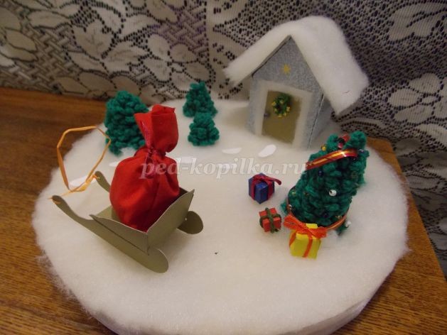 Вышиваем с детьми панно "Со старым Новым годом": часть 1 Вышиваем с детьми панно "Со старым Новым годом": часть 1 Авторы: Ромашова Евгения, Никитина Анжела Владимировна. Рисуем эскиз. Вышиваем ёлочку. Протягиваем иголку с лентой на лицевую сторону канвы в точке А. Расправляем ленту и вкалываем иголку в точке В. Немного вытягиваем петлю шариковой ручкой. Ствол вышиваем швом «стежок прямой». Протягиваем иголку с лентой на лицевую сторону канвы в точке А. Расправив ленту, вкалываем иголку в точке В и протягиваем лен¬ту на изнаноч... Снеговик из рулончика от туалетной бумаги: часть 2 Снеговик из рулончика от туалетной бумаги: часть 2 Автор: Сухарева Татьяна Алексеевна Делаем глаза. Берем синюю цветную бумагу и вырезаем полукруг, затем белую бумагу и вырезаем полукруг меньшего размера. На белом полукруге рисуем зрачок. Приклеиваем глаза нашему снеговичку. Теперь нам осталось сделать рот и нос-морковку. Для этого берем красную бумагу и вырезаем рот. Чтобы сделать нос, берем квадрат красного цвета. Складываем его в виде морковки, загибаем кончик для приклеивания. Лишнее обр... Елочка из пряжи Елочка из пряжи Добавьте яркий бисер вместо игрушек. Шуршащая медуза Шуршащая медуза Автор: Юлия Корчак. Новогодняя поделка из бросового материала: часть 2 Новогодняя поделка из бросового материала: часть 2 Автор: Французова Ольга Александровна. Изготовила крышу. Еще я изготовила из картона золотого цвета сани. Вырезала по шаблону и склеила их. На сани положила сшитый мешок с подарками. Основу поделки обклеила ватином (снег) Сделала коробочки с подарками и вырезала следы из белой бумаги. Потом все заготовки собрала. И вот что получилось Часть 1 https://www.detkipodelki.ru/pages/23846.html Часть 2 https://www.detkipodelki.ru/pa... Снеговик из рулончика от туалетной бумаги: часть 1 Снеговик из рулончика от туалетной бумаги: часть 1 Автор: Сухарева Татьяна Алексеевна Сначала нам надо сделать туловище у снеговика. Для этого берем рулончик от туалетной бумаги и белый лист по размеру рулончика Обклеиваем его белой бумагой Затем, берем носок, обрезаем его по пяточку так, чтобы получилась «труба» с резинкой. Из оставшегося носка режем две полоски: одну короткую (для шапочки), другую длинную (для шарфика). Дальше берем туловище и намазываем клеем только ободок, чтобы прикле... Снеговичок из пряжи Снеговичок из пряжи Используйте бусины вместо глаз и пуговиц. Маленькие котики Маленькие котики Можно использовать как брелки на детских рюкзаках. Новогодняя поделка из бросового материала: часть 1 Новогодняя поделка из бросового материала: часть 1 Автор: Французова Ольга Александровна. Я начала работу с изготовления елочек. Взяла крючок и пряжу зеленого цвета и набрала воздушные петли, соединяя их петельками. Длину можете определить сами. Это зависит от высоты елочки. Затем я склеила по спирали каждую елочку. Всего у меня пять елочек разной высоты. Одну из них "нарядила" бисером. Затем вырезала из картона шаблон домика (7х7см) Обклеила остатками обоев. Оформила окошко и дверь. Час... Куколка из шпагата: часть 2 Куколка из шпагата: часть 2 Автор: Воронкина Людмила Артемьевна Потом все это хозяйство туго перевязываем. Легким движением руки откидываем волосы . Теперь вокруг головы делаем перетяжку, завязывая ниточку. Все нитки предварительно стараемся ровненько распределить. Разделяем туловище на 2 половинки. Вста