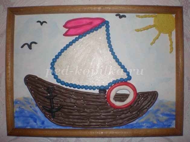 Клумба из бумаги: часть 1 Клумба из бумаги: часть 1 Автор: Селиванова Светлана Сергеевна Инструменты и материалы: ножницы, клей, двусторонняя цветная бумага. 1. 4 листа зеленой бумаги сложите "гармошкой", согните пополам и склейте круг. 2. На основу-клумбу можно "посадить" любые цветы - у меня получились вот такие. Часть 1 https://www.detkipodelki.ru/pages/24558.html Часть 2 https://www.detkipodelki.ru/pages/24566.html Большие цветы из бумаги Большие цветы из бумаги Автор: Селиванова Светлана Сергеевна Для творчества вам понадобятся следующие инструменты и материалы: клей, ножницы, двусторонняя цветная бумага, карандаш, трафареты для лепестков. Изготовьте трафареты для лепестков трех-четырех размеров и трафарет в форме маленького цветка для серединки. Выберите цветную бумагу для вашего цветка и вырежьте, используя трафареты, по 6 лепестков каждого размера. Соберите цветок (последовательность на фото) У вас могут получит... Кораблик для папы: часть 2 Кораблик для папы: часть 2 Автор: Смирнова Татьяна Владимировна 6. Катаем коричневые колбаски разной длинны, выкладываем по контуру корпуса корабля. Затем, начиная с левой части корпуса, выкладываем их горизонтально плотно к друг другу, не выходя за контур рисунка. 7. Для изображения спасательного круга раскатываем две толстые колбаски красного и белого цвета. Соединяем концы колбасок и накладываем сверху на корпус корабля в правой части. Внутри белый круг, снаружи – красный.Слева на носовой ча... Веселые самолетики Веселые самолетики Делаем на основе картонных втулок. Объёмный цыплёночек Объёмный цыплёночек Делаем из цветной бумаги с использованием ватных палочек. Кораблик для папы: часть 1 Кораблик для папы: часть 1 Автор: Смирнова Татьяна Владимировна 1. На белом картоне располагаем шаблон кораблика и обводим простым карандашом (или черным фломастером), дорисовываем спасательный круг. 2. Акварельными красками раскрашиваем фон картины: небо – бледно-голубым цветом, море - ярко-синим. 3. Берем белый пластилин с блестками. Отщипываем маленькие кусочки, раскатываем тонкие колбаски и выкладываем по контуру паруса. Затем закрашиваем весь парус тонким ровным слоем, начиная от края к ц... Раскрашиваем картины в технике витраж Раскрашиваем картины в технике витраж Делаем это при помощи малярного скотча. Цветок-сердечко Цветок-сердечко Создаем с детьми объем на плоскости. Цветы из бумаги Цветы из бумаги Сделайте лепестки из разной бумаги, чтобы получить такую красоту. Прекрасная карета для кукол и игрушек: мастер-класс, часть 4 Прекрасная карета для кукол и игрушек: мастер-класс, часть 4 Автор: Гневанова Ольга Михайловна. Из гофрированной бумаги зелёного цвета вырезаем заборчик, для будущих чашелистиков. Обклеиваем бутон цветка. Отрезаем лишнее. Из блестящей широкой ленты отрезаем 4 полоски по 8 см, обжигаем спичкой, горячие склеиваются. На основу (белый кружок) приклеиваем. Создаем композицию из роз и приклеиваем на основу. Даем волю своей фантазии. Оформление золоченой кареты Нашу композицию приклеиваем на кар... Прекрасная карета для кукол и игрушек: мастер-класс, часть 3 Прекрасная карета для кукол и игрушек: мастер-класс, часть 3 Автор: Гневанова Ольга Михайловна. Цветы из гофрированной бумаги Делаем цветы белого и желтого цвета. Гофрированную бумагу сложим гармошкой на 7 - 9 лепестков (каждый слой –лепесток) шириной 2,5 см. Отрезаем высот