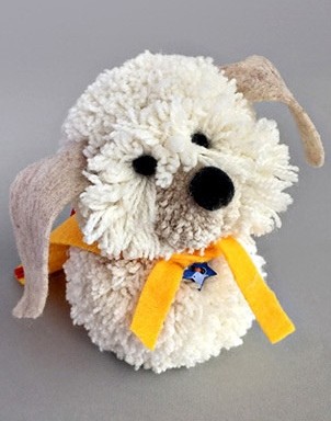 Пудель из помпонов Пудель из помпонов Процесс изготовления собачки состоит из таких этапов: Шаг 1. Для начала нужно изготовить три помпона. Два из них должны быть побольше – это будут тело и голова собачки, а один, контрастного цвета, поменьше, так как его мы будем использовать при изготовлении мордочки пуделя. Первым делом сделайте два картонных круга с полой сердцевиной. Диаметр картонных кругов зависит от ого, какой помпон вы хотите получить. Приложите круги друг к другу и начинайте наматывать светлые нитки. Для п...