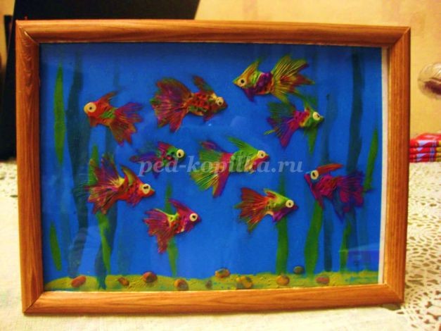 Рыбка из соленого теста Рыбка из соленого теста 1. Берем необходимый шаблон, вырезаем необходимые нам детали. 2. Приступаем к лепке. Работать с тестом так же просто как с пластилином. Раскатываем на столе. У нас получается огромный блин. 3. Прикладываем наши вырезанные шаблоны и прикладываем. 4. Теперь вспоминаем про технику безопасности. Берем нож/ стек и вырезаем фигуры. 5. Получившиеся фигуры мы крайне аккуратно перекладываем на застеленный пергаментной бумагой противень. 6. Отправляем сушиться в духовку (минимальный... Рисуем рыбок Рисуем рыбок Создать таких paдужных рыбок очень просто. Сначала распечатайте шаблон или нарисуйте похожую рыбку. Будет замечательно, если ребёнок сможет её нарисовать самостоятельно. Затем приготовьте краски. Раскрасить рыбку можно двумя необычными способами. 1. Рисуем рыбке разноцветные чешуйки краем картонной полоски. Можно использовать рулоны от туалетной бумаги, разрезав из пополам. 2. Дайте малышу кусочки сельдерея — пусть ребёнок макает сельдерей в краски и раскрашивает рыбку на с... Пластилинография Пластилинография Автор: Рудакова Ирина Александровна Для работы нам необходимо взять: лист картона, пластилин (жёлтого, синего, зелёного и чёрного цветов), 2 листа бумаги, картинку с изображением рыбок, копировальную бумагу, пайетки, карандаш, ножницы, канцелярский нож или острую стеку, скалку, растительное масло. Процесс: Делаем основу - фон. Возьмём лист картона и начнём на него наносить тонким ровным слоем пластилин синего цвета. Подготовим пластилин жёлтого, зелёного и чёрного цветов д... Рыбки из бумаги гармошкой Рыбки из бумаги гармошкой Два листа бумаги складываем гармошкой и склеиваем их в шар. Это тельце рыбки. Приклеиваем глаза и хвост. Плавающая рыбка Плавающая рыбка Рыбка, которая плавает вперёд и назад, впечатлит маленьких детей, а идею создания плавающей рыбки вы можете использовать в кукольном театре, открытках, мягких развивающих книгах и т.п. Продолговатый лист картона превратите в кусочек океана с помощью цветной бумаги и клея. На противоположных концах картона сделайте дырочки, в них протяните верёвочку с приклеенной на неё картонной рыбкой. Чтобы верёвочка не выскользнула, на её концы привяжите бусинки-стопоры. Когда ребёнок будет тян... Рыбки в аквариуме Рыбки в аквариуме Автор: Селиванова Светлана Сергеевна. Ход выполнения аппликации Берём два квадрата разного размера. Складываем их по диагонали и разрезаем по диагонали.В итоге получаем два треугольника. Жёлтый треугольник будем использовать для изготовления тела рыбки, а фиолетовый - для изготовления хвоста. Складываем эти треугольники гармошкой, начиная с основания Складываем полученные детали пополам (от основания к верхушке) На основу картон (картон выбираем синего цвета) приклеиваем ... Пластилинография: рыбки Пластилинография: рыбки Автор: Садковкина Анастасия Владимировна. Для фона аквариума нам понадобиться одна половина листа картона. 1. Отщипываем небольшие кусочки жёлтого пластилина. Рисуем песок, размазываем пластилин в виде полоски, с помощью карандаша передаём фактуру песка. 2. Для водорослей берём пластилин зелёного цвета разных оттенков. 3.Отщипывая маленькие кусочки, рисуем водоросли – размазываем с низу верх вертикальные полоски с левой и правой стороны аквариума. Оставляя середину свободн... Оригами 