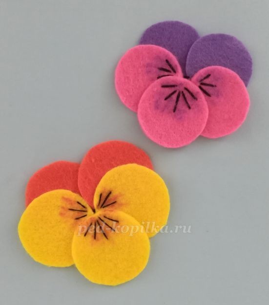 Улитка из фетра: мастер-класс Улитка из фетра: мастер-класс Автор: Марья Ману. Игрушки из фетра Игрушки из фетра Автор: Екатерина Малиновская (Murami). На полянке На полянке Автор: Посысаева Лена Материалы и инструменты: картон, фетр, цветной блок для записей, картинка пчелки, кружево, клей, ножницы, карандаш. Описание: 1) Разбираем по цветам блок для записей и дорисовываем лепестки на цветах. 2) По линиям разрезаем лепестки и каждый лепесток сгибаем по середине. 3) Формируем цветок из нескольких частей. 4) Сформировав цветок приклеиваем серединку. 5) Вырезаем из картона и фетра одинаковые прямоугольники. 6) На картон наклеива... Фиалки из ткани Фиалки из ткани Автор: Форофонова Светлана Для аппликации нам потребуются следующие материалы: Лист картона, лист белой бумаги, кусочки фетра коричневого, зеленого и розового цветов,ткань для занавесок, ленточка длинной 1 метр, кусочек ткани с нарисованной пчелкой, несколько желтых бисерин, иголка, нитки, ножницы, клей и кисть. Сначала возьмём лист бумаги и нарисуем на нем шаблоны для изготовления кашпо, цветочков, листьев и занавесок. Эти шаблоны вырезаем. С помощью шаблонов рисуем на ку... Милые цветочки из фетра Милые цветочки из фетра Авторы: Дымченко Каролина и Павлова Вера Валерьевна Порядок выполнения работы: 1. Распечатываем шаблоны цветка хризантемы трех различных размеров и лепестка и вырезаем их. Мы уменьшили предложенные ниже шаблоны цветов и листьев так, чтобы у нас получились 5 хризантем различного цвета. 2. Для хризантемы белого цвета нам понадобится: три различных по величине белых заготовок цвета; два листика; один стебель салатового цвета из фетра и сердцевина цветка оранжевого цвета.... Цветы из фетра: мастер-класс Цветы из фетра: мастер-класс Автор: Кобзева Ирина Владимировна Процесс: Вырезаем из желтого фетра пятилистники. Соединяем клеем края лепестков, чтобы получился цветок - чашечка. Из бечевки делаем тычинки и фиксируем скотчем. Тычинки красим желтым цветом. В серединку нашего цветка вдеваем тычинки. Делаем еще 3 таких цветка и соединяем крестом друг с другом. Ствол оборачиваем зеленой полоской из фетра. Первый ряд готов.Для второго ряда нам понадобится еще 4 цветка.Из зеленого фетра выреза... Как сделать цветы из фетра детскими руками Как сделать цветы из фетра детскими руками Автор: Петрик Надежда Федоровна Процесс: Весной так хочется после зимы ярких красок. Можно украсить свой дом, любое помещение яркими, красочными цветами. Цветочные композиции не только радуют глаз или украшают интерьер, но и служат украшениями для волос, декора нашей одежды, или в виде брошей. Цветы можно сделать из различных материалов, в различных техниках. В этом мастер-классе предлагаю сделать объёмные цветы из фетра. Преимущества фетра в ... Цветы из фетра Цветы из фетра Автор Кантеева Зарина Александровна Процесс: 1. Обводим цветы по шаблону, вырезаем. 2. Из вырезанных деталей собираем цветы в произвольной форме. Каждый цветок должен содержать три элемента: большой, средний и маленький. Склеиваем детали между собой. 3. Из остатков фетра вырезаем кружочки и украшаем ими лепестки цветов. 4. На изнаночную сторону цветов наносим клей и приклеиваем шампуры 5. На изготовленные цветы привязываем бантики из ленточек. 6. Цветы можно сделать и объемными... Цветы из фетра детскими руками: мастер-класс Цветы из фетра д
