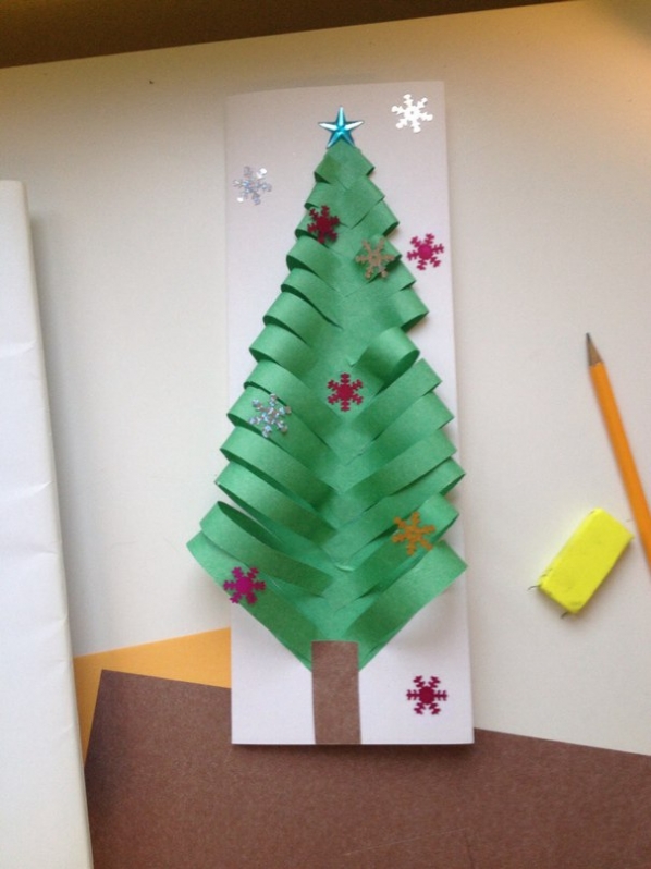 Ксю / Страницы Объемная открытка с елочкой Елки из бумажных полосок Белый мишка. Идеи поделок с детьми . Лепим обезьянку Снежинки из макарон Новогодние картинки из отпечатков ножек 1 Игрушки на елку из бумаги 1 Новогодняя открытка Сын сделал еще одну новогоднюю открыточку. Опять сделал все сам-сам! Итак, берем лист А4 голубой бумаги или картона. Складываем пополам. Вырезаем из белой бумаги сугроб и приклеиваем его на обложку. Приклеили. Теперь вырезаем елочку. Сын строил ровные треугольники по линейке, т.к. он у нас математик и очень любит точность во всем. Приклеиваем елочку. Сломался циркуль, поэтому кружки для снеговика пришлось вырезать из квадратов (самый простой способ сделать ровный круг - это обрез... 2 Птичка из ниток Птичка из пряжи Дед Мороз из теста Пирог в виде Санта-Клауса Дед Мороз оригами Дед Мороз в технике оригами Идея пластилиновой елочки (из инета) ( Новогодняя открытка с елочкой Недавно Curly создавала топик с елочкой http://www.detkipodelki.ru/1448-elka-iz-bumagi.htm... Мне очень понравилась идея, и вот сынок сделал такую открыточку для бабушки на НГ. Сделал абсолютно все сам от начала до конца, я думала терпения не хватит, но нет. Сделал все с большим удовольствием, по времени заняло где-то минут 30. 5 Идеи очень простых, но эффектных новогодних открыток 2 Как украсить окна к НГ Украсить можно по-разному: - вырезать из белой бумаги контуры и наклеить их - нарисовать белой смывающейся краской рисунки и узоры - устроить инсталляцию на всем пространстве окна, включая подоконник Несколько идей, которые вдохновят вас сегодня же приступить к украшению окон в квартире 1 ← Предыдущая Следующая → 1 2 3 4 5 Последняя Показаны 16-30 из 104