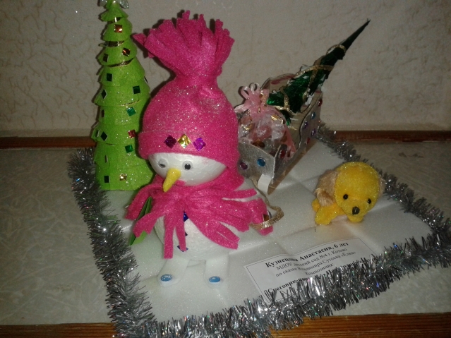 Насёна / Страницы Снежинка в технике канзаши Эту поделку сделала моя мама. Я пока не пробовала, но хочу поделиться с вами ее результатом. Первая снежинка... Не судите строго. Я бы тоже хотела так научиться, но мама говорит, что на каникулах меня поучит. Жду. Техника канзаши, клеевой пистолет, бусины, бисер, ленты, зажигалка или спички, немного терпения - 15 мин и ...готово! 3 Снеговичок - почтовичок Читали сказку В.Сутеева "Ёлка"? Вот и родилась композиция по прочтенной сказке. Снеговик везет ёлочку для деток, а песик помогает ему. Они все смогли, все преодолели и выполнили поручение деток! Творческих успехов вам и исполнения всех желаний в Новом году! 3 Шар из розочек для нашей Ёлочки Вот какой шарик для ёлки отправился на выставку в детский сад! Ох и потрудились мы с мамой! Этот шар - елочная игрушка изготовлен: основа - пенопластовый шарик обклеен - розочками, вырезанными из фетра и листик, тоже из фетра. Розочки - это маленькие кружочки и потом разрезаны к центру по спирали. Их свернули и приклеили клеем из пистолета клеевого. Вы тоже сможете, попробуйте! 4 Наша Ёлочка - украшение на елку. Мы на конкурс в детский сад изготовили с мамочкой вот такую Ёлочку! Эту Ёлочку мы делали целый вечер! Мама скручивала проволоку, а я нанизывала бусины и бисер. Правда, красота вышла?! Трудоемко, но красиво. Попробуйте, у вас тоже так получится! Схему подсмотрели в журнале по рукоделию, но не точно по ней работали, немного пофантазировали с количеством бисера. 2