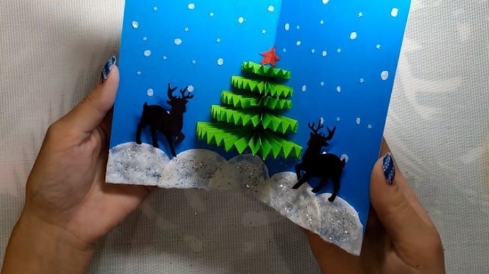 Из бумаги и картона можно сделать открытку в технике киригами.