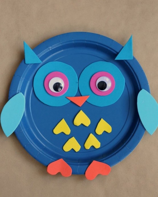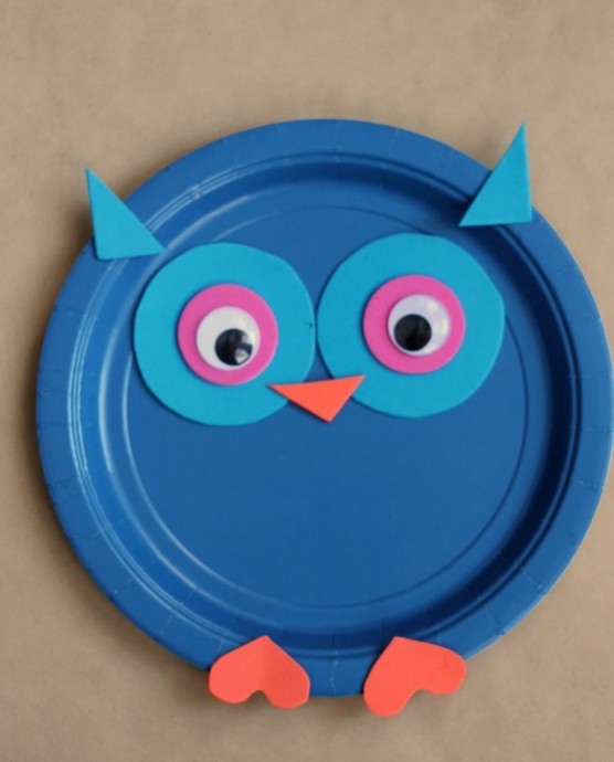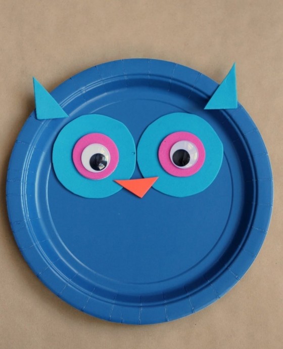Сова из одноразовой тарелки это приучение ребенка искать материалы для творчества повсеместно.