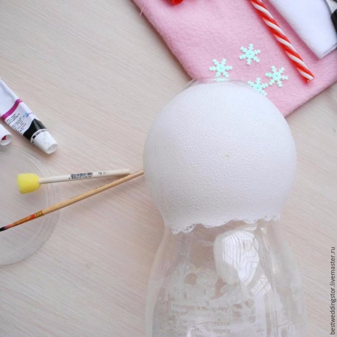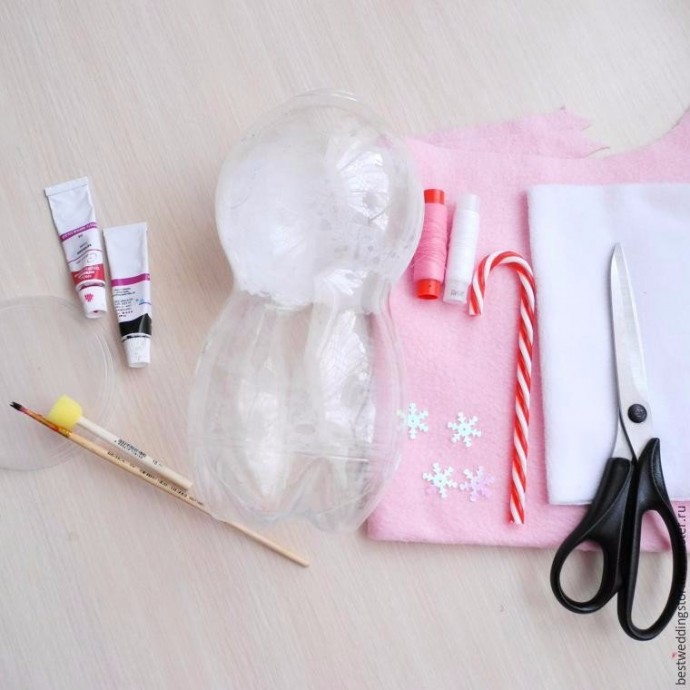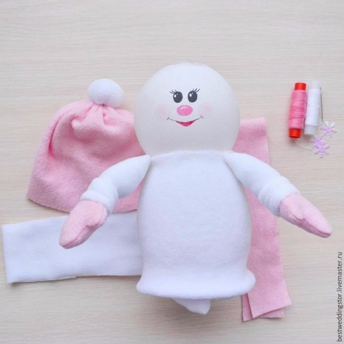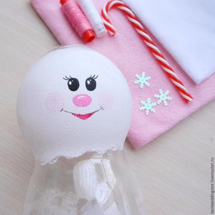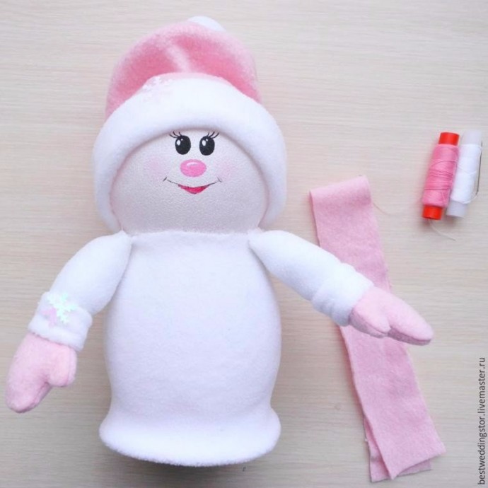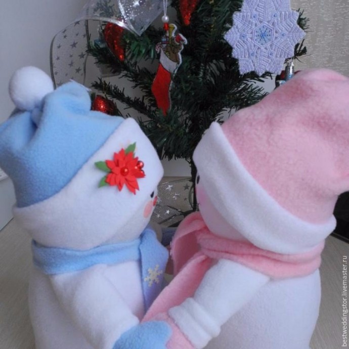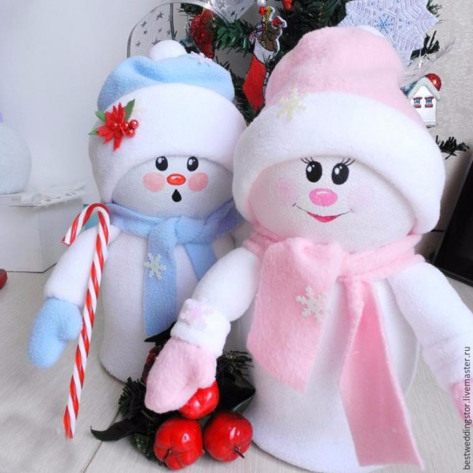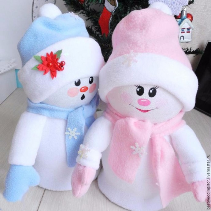 Снежка и Снежок делаются из флиса и пластиковых бутылок.