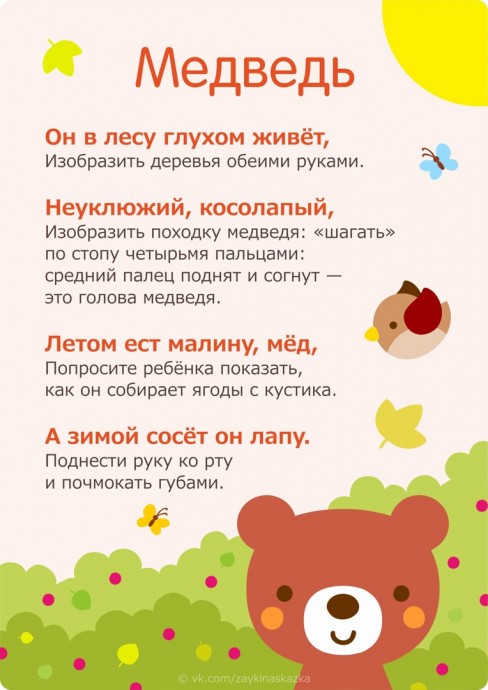 Произносить тексты пальчиковых игр взрослый должен максимально выразительно: то повышая, то понижая голос, делая паузы, подчёркивая отдельные слова, а движения выполнять синхронно с текстом или в паузах. Наибольшее внимание ребёнка привлекают пальчиковые игры с пением. Можно пропевать предложенные тексты на любую подходящую мелодию. Малышам трудно проговаривать текст, им достаточно выполнять движения вместе со взрослым или с его помощью.