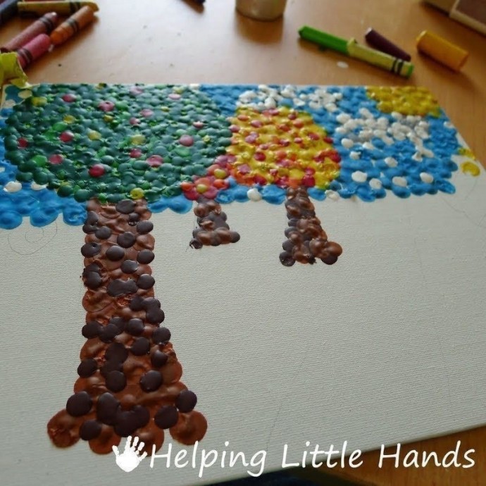 Перед занятием и выбором сюжета рекомендуем посмотреть с детьми картины в стиле пуантилизма, это поможет понять идеи и спланировать работу