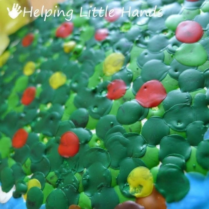 Рисование расплавленными мелками требует особенного внимания и тщательного присмотра со стороны взрослых. Но процесс удивительно захватывает всех участников, и результат отличается от прочих техник.