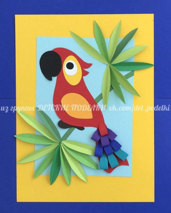 Бумажная аппликация-поделка "Попугай"