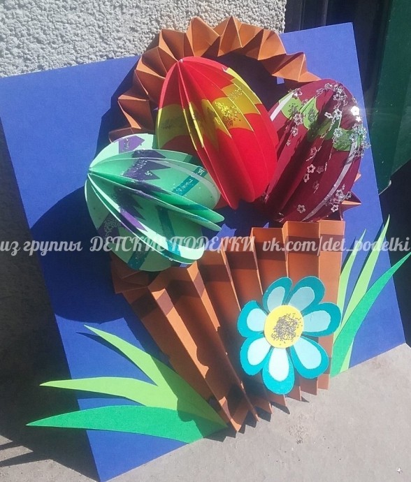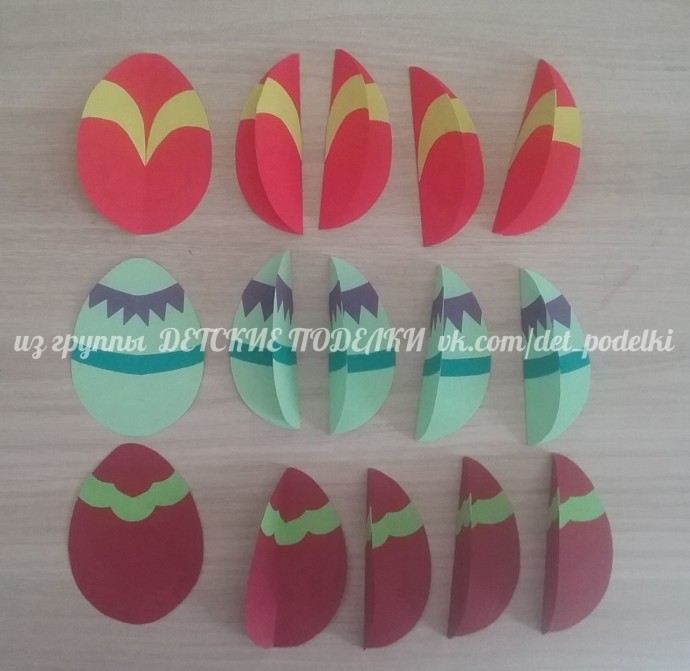 Яиц делаем много одинаковых деталей, сгибаем пополам и склеиваем половинками друг с другом.