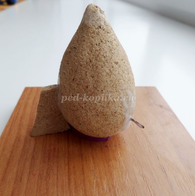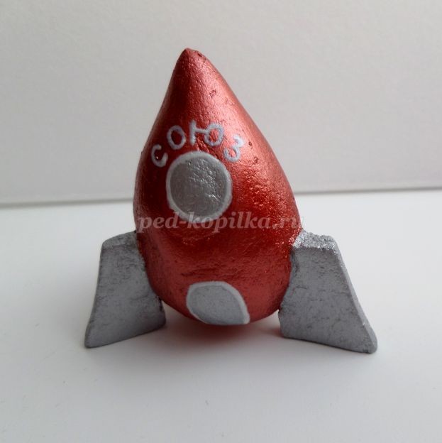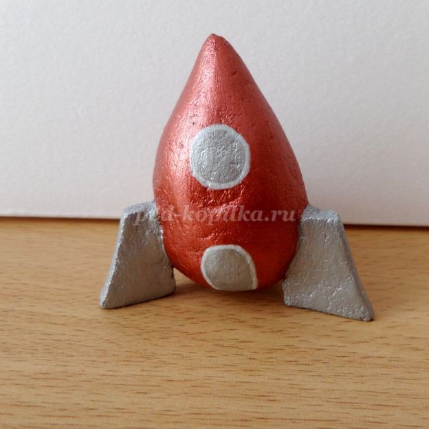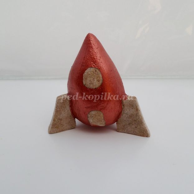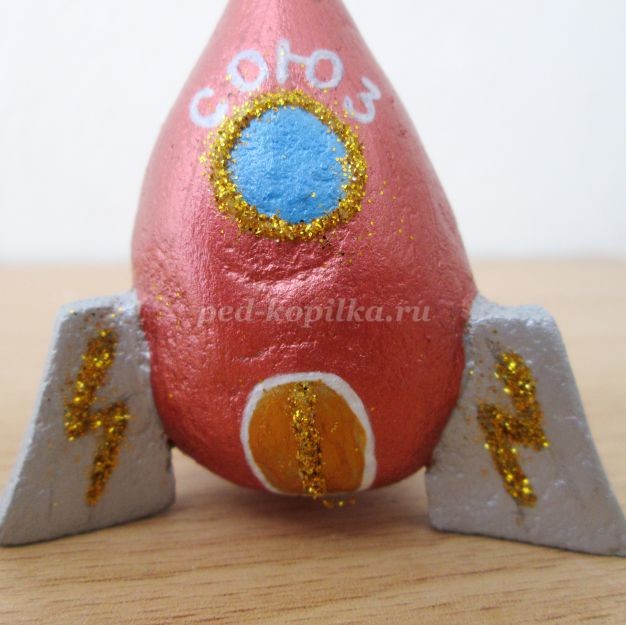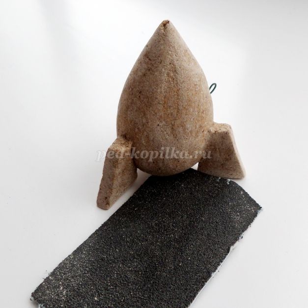Даем подсохнуть игрушке, как правило, на это уходит 2 -3 дня.Вынимаем зубочистку из пластилина. Лишний кончик зубочистки отрезаем канцелярским ножом.Зачистить ракету наждачной бумагой.