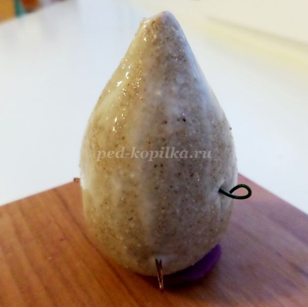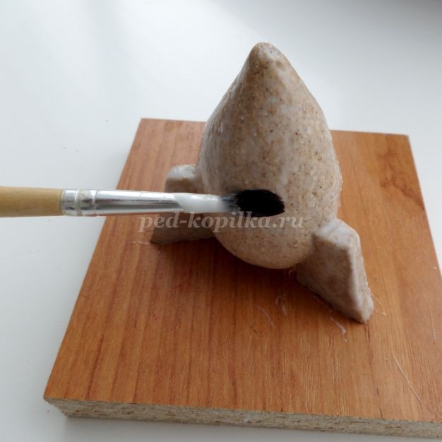 Кистью, смоченной водой с клеем ПВА, разгладить края игрушки.