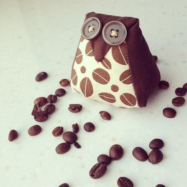 Аромаподушки "Кофейные совушки" дети могут наделать как в подарок друзьям, так и родным к новому году.