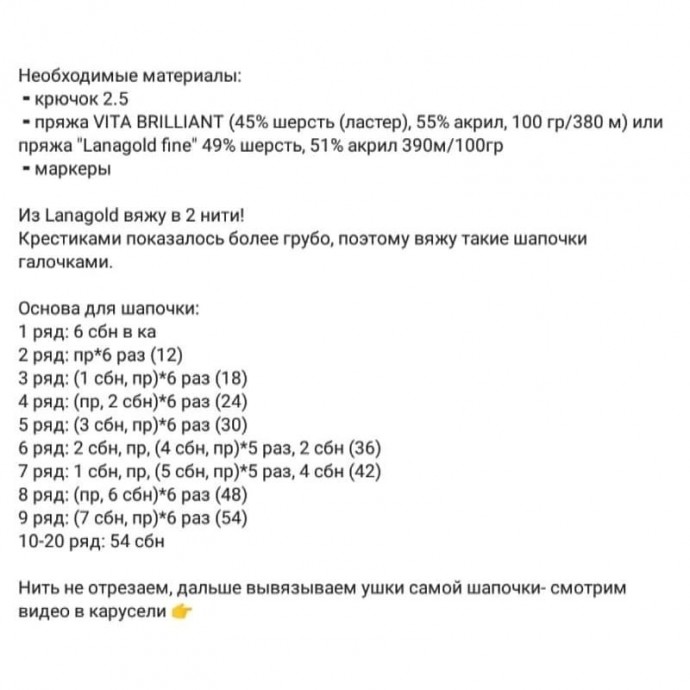 Нить не отрезаем, дальше вывязываем ушки самой шапочки.