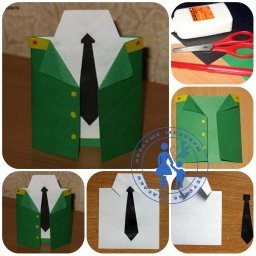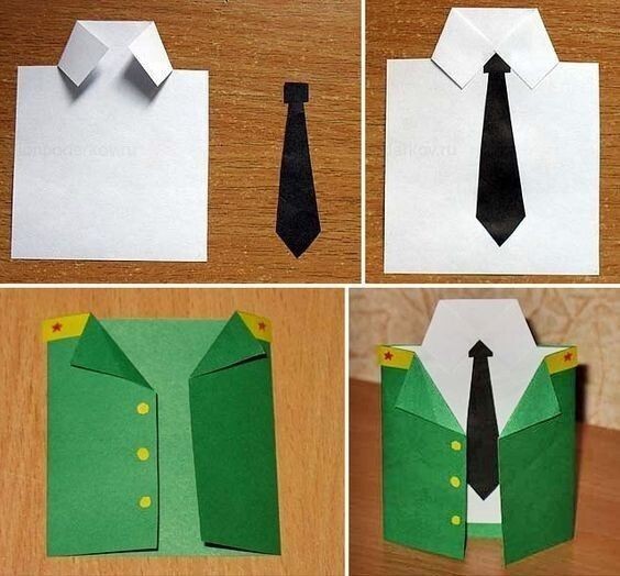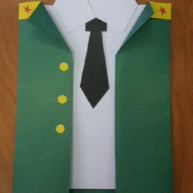 Такой оригинальной поделкой из бумаги "Мундир" будет приятно поздравить любого папочку на 23 февраля, ведь папам так идет форма.
