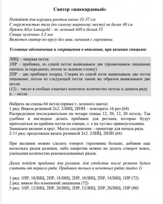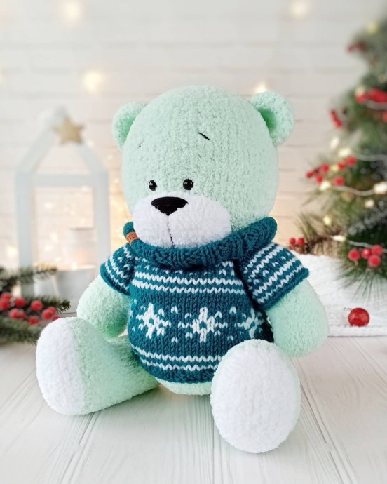Вязаный свитер для мягких игрушек может быть выполнен детьми среднего и старшего возраста.