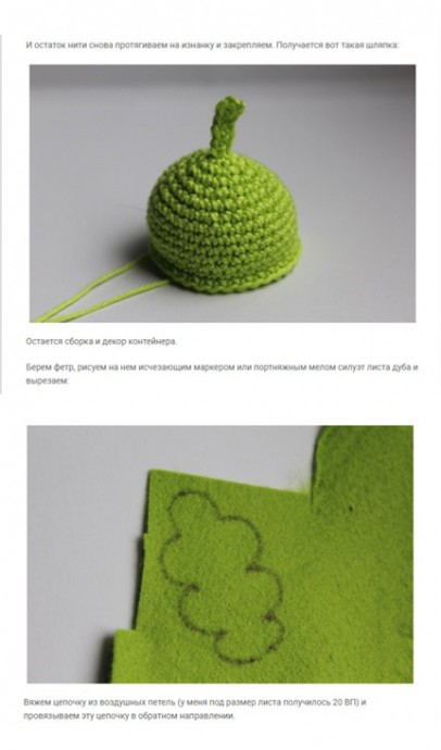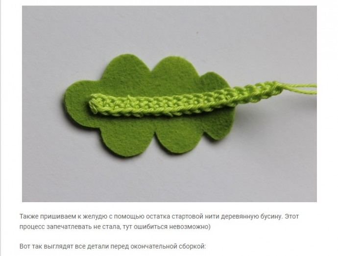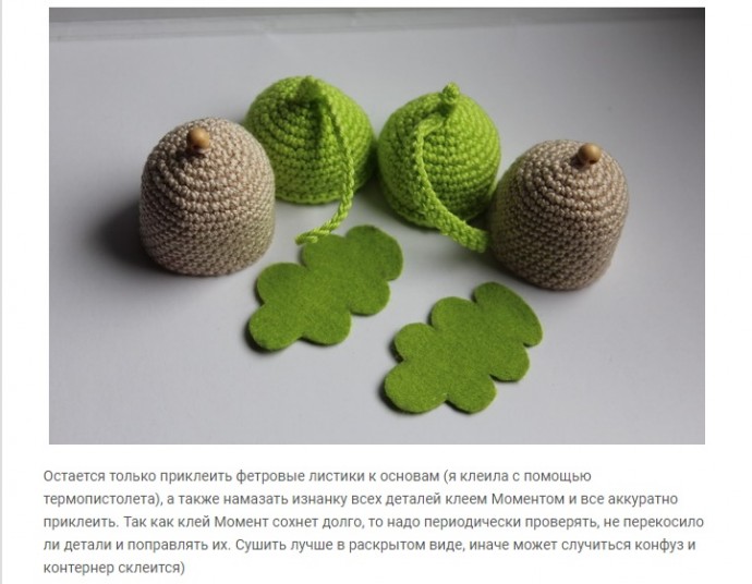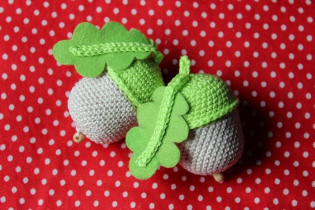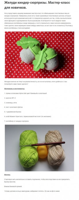 Желуди из киндер-сюрпризов легко связать любому ребенку, которого уже научили вязать.