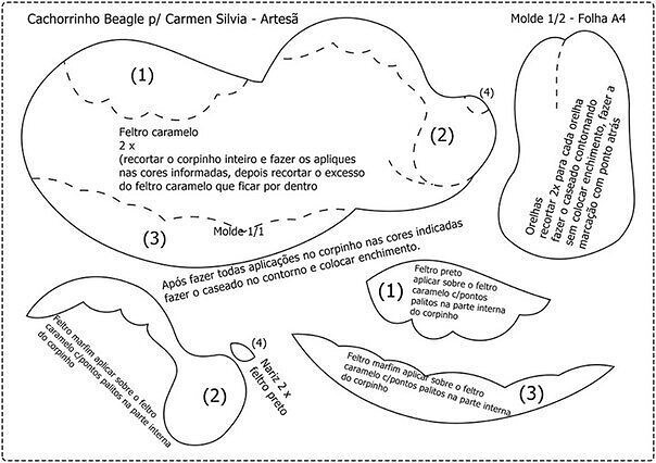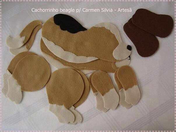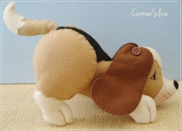 Выкройка мягкой собачки-игрушки из фетра это возможность шить детям младшего возраста, ведь фетр не требует обработки края.