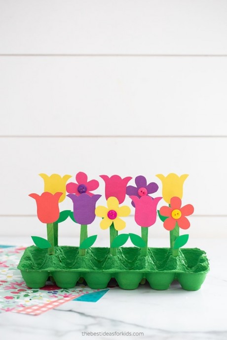 Цветочная грядка из картонных лотков может претерпевать изменения, если вы решите сделать с детьми цветы другой формы.