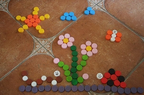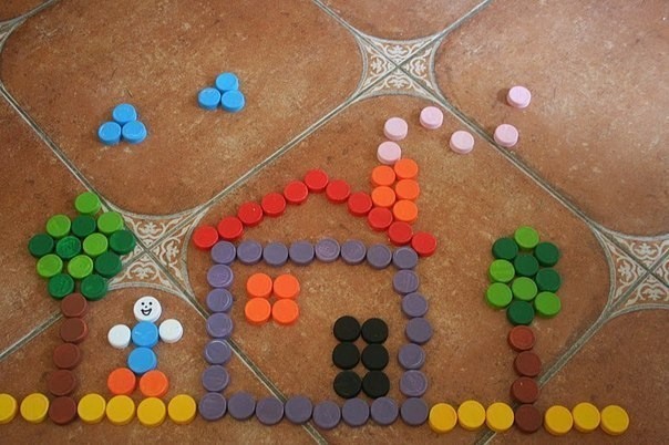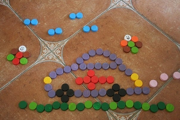 Рисование пластиковыми крышечками или конструктор из пластиковых крышек