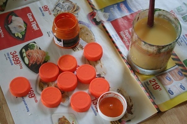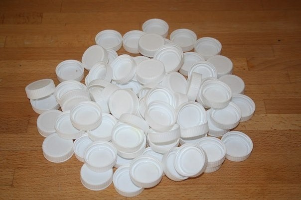 Вы можете покрасить белые пластиковые крышечки от бутылок в любой цвет.
