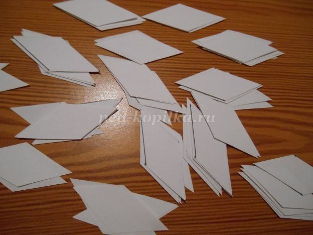 На ромбах сделать надрезы с двух сторон к середине, тоже желательно по несколько штук (в целях экономии времени).