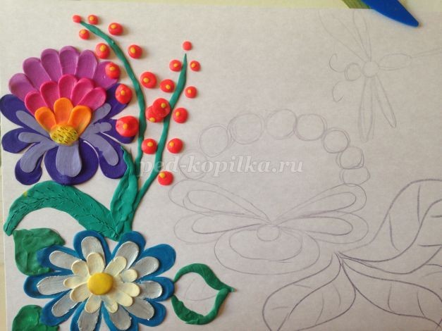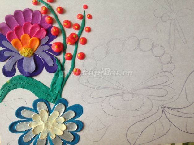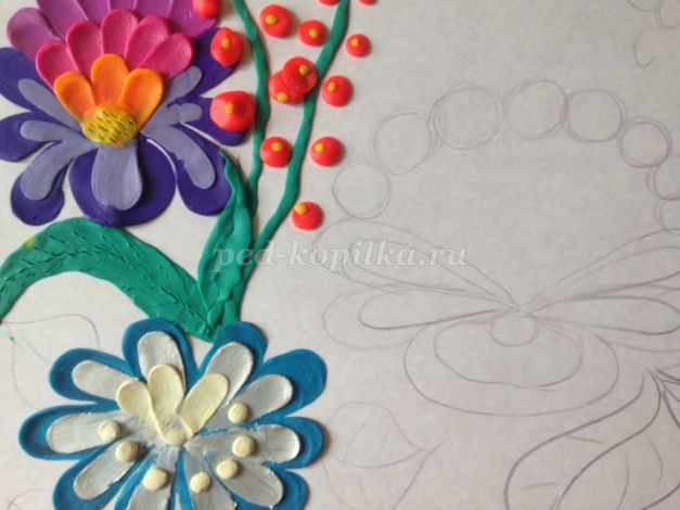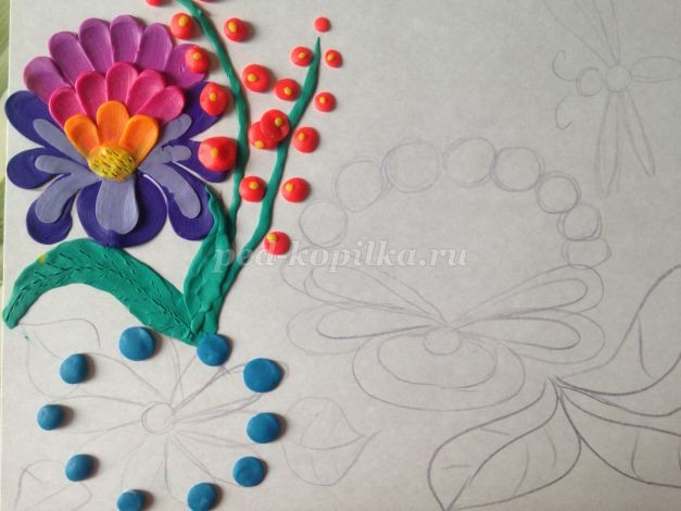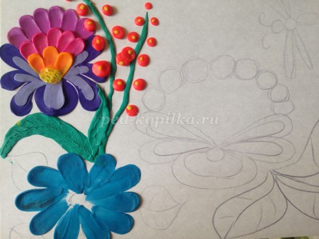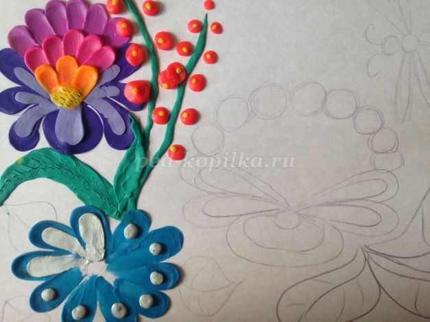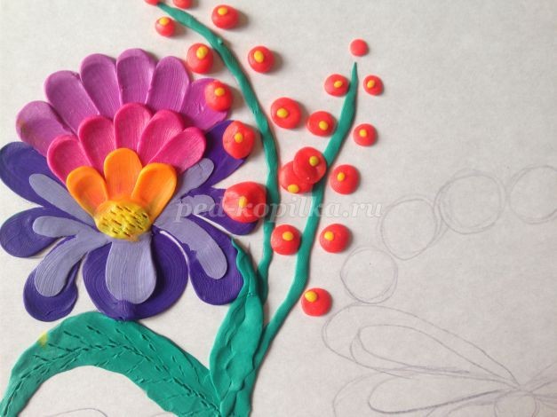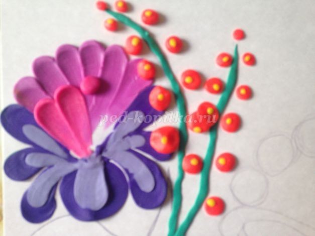 Выполняем аналогичным способом второй ряд лепестков розовым пластилином.