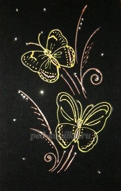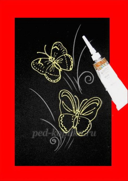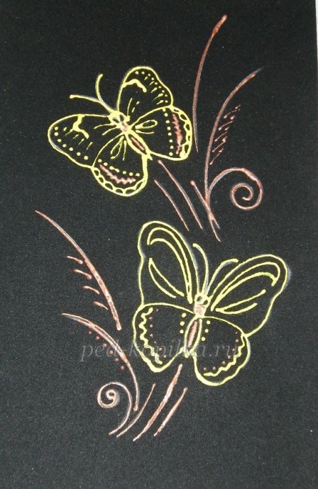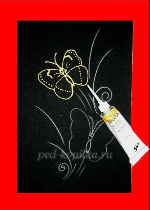 2. Наносим контурный рисунок акварельным карандашом (акварельные карандаши отлично пишут по бархатной бумаге)