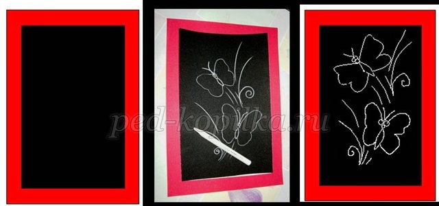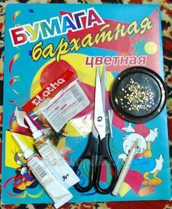1. Из бархатной бумаги вырезаем основу, наклеиваем её на плотный картон. Из двух листов бархатной бумаги можно получить две рамки-основы