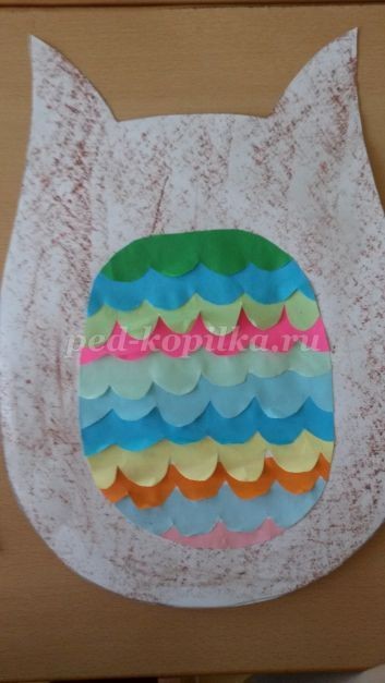 7. Наклеиваем нашу заготовку на шаблон совы.
