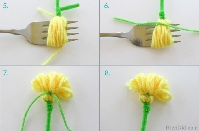 Используйте вилку, чтобы длина витков пряжи была одинаковой.