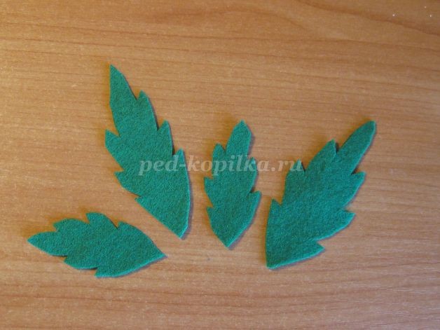 Из зеленого фетра вырежьте листочки .