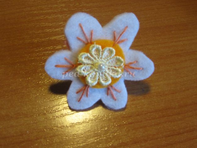 В центр цветка пришейте декоративную серединку.