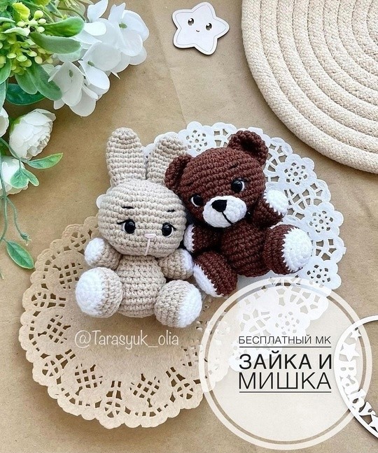 Зайка и мишка крючком