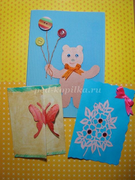Внутри открыток оставьте самые добрые пожелания для родных и друзей ребенка.