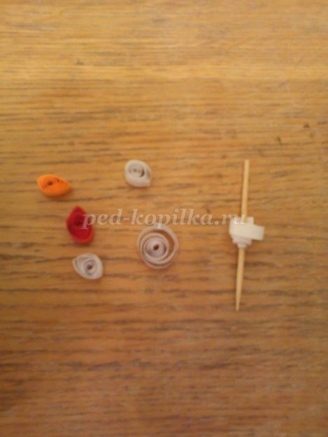 Из красных фигур собираем цветы и приклеиваем к верхним углам открытки.