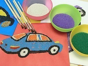 • Высыпьте окрашенный песок на листы бумаги или на бумажные одноразовые тарелки большого диаметра. Разложите песок как можно более тонким слоем и просушите в течение суток.